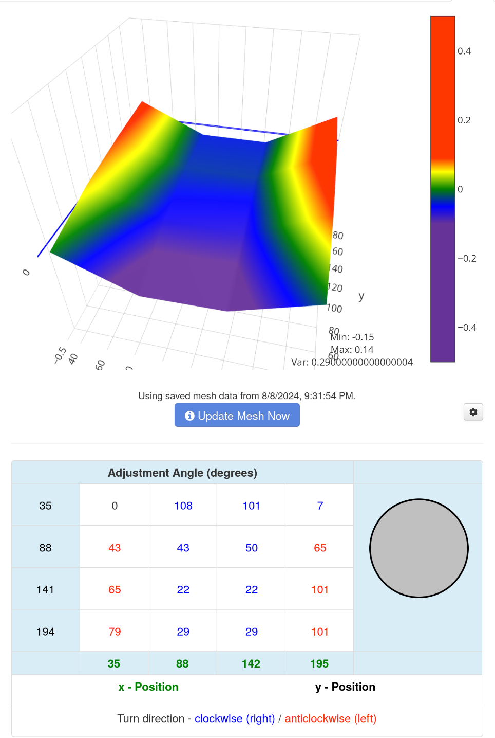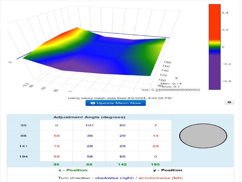 The var is 0.75 now, not very good. Might have to loosen the knobs, but I like doing it the long way, that can take 2+ hours.
